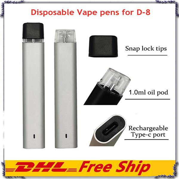 D8 Disposable Vape Pen Rechargeable E Cigarette Kit 240mah Battery 1ml Carts Empty Vapes Cartridges Ceramic
